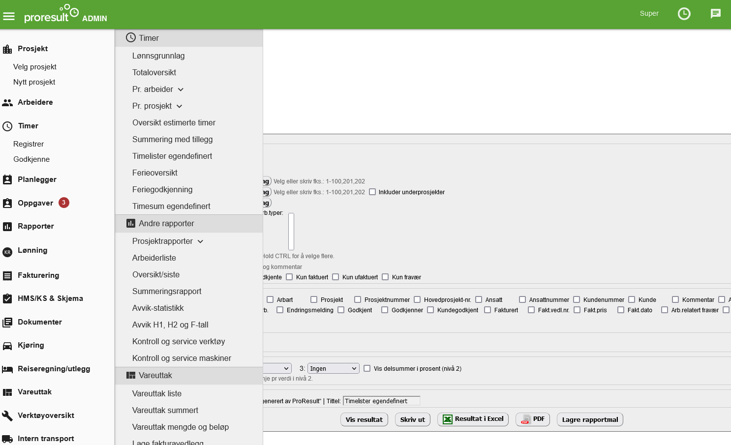 Proresult Timeregistrering forenkler arbeidet med fakturering og lønnsutbetaling. Brukeren kan lett velge hvilke timer som skal føres på hvilket prosjekt.