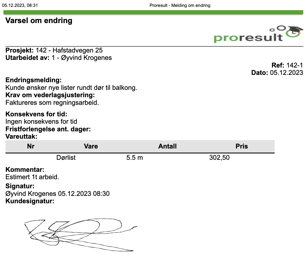 - Integrert med andre Proresult-moduler, og overfører data sømløst