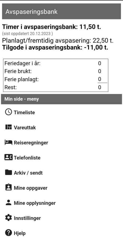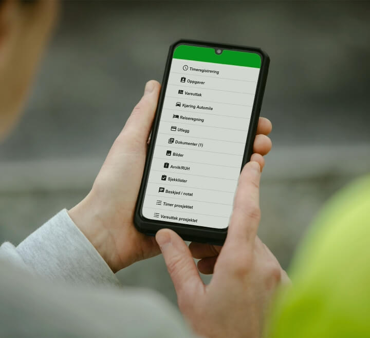 Eksempelvis timeregistrering, kjøring og vareforbruk.