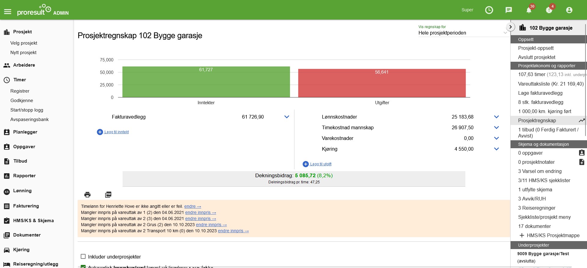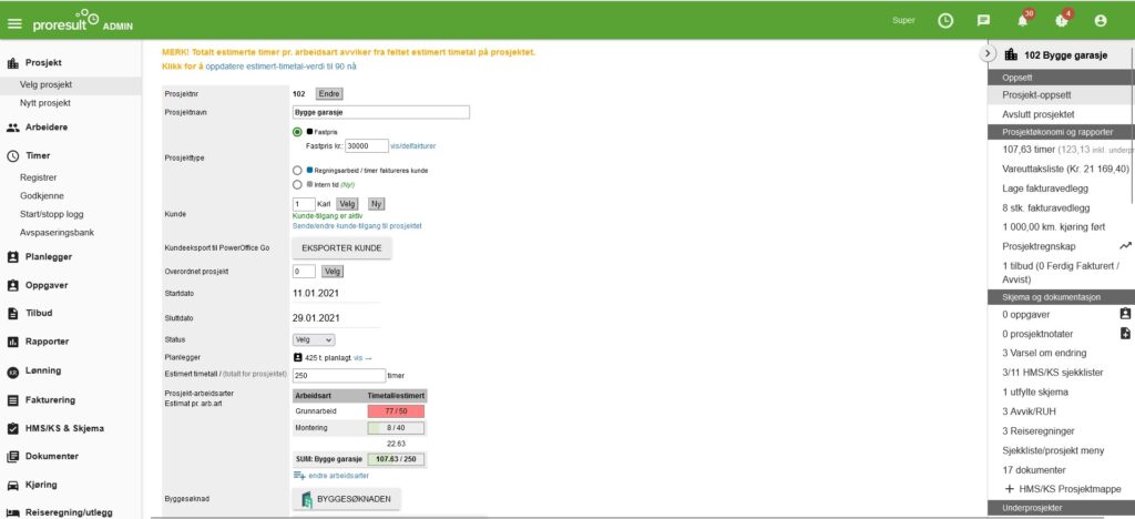Før systemet kan tas fullt i bruk, er det ofte behov for hjelp fra oss med en del manuelt oppsett av data. Kostnader vil tilkomme for eksempelvis oppstartsmøte, logo og profilering i systemet, integrering til regnskap, oppretting og tilpassing av kontoen, import av prosjekter, kundelister og ansattlister, oppsett av dokumenter og sjekklister (for HMS/KS) og enkel opplæring og innføring i selvhjelp.