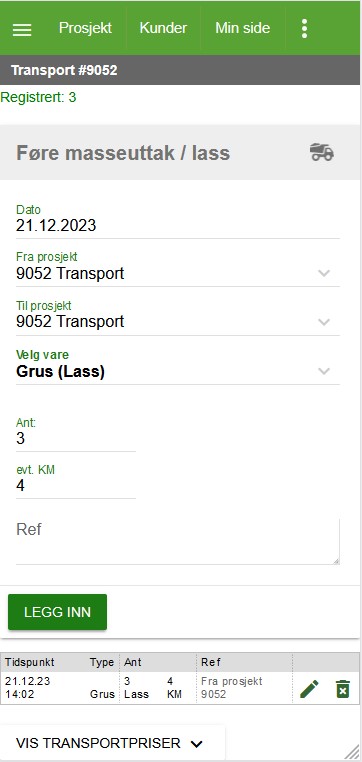 Du får dermed riktig sats og pris for massekjøringen, og det er enkelt å ta dette videre til faktureringsgrunnlag.