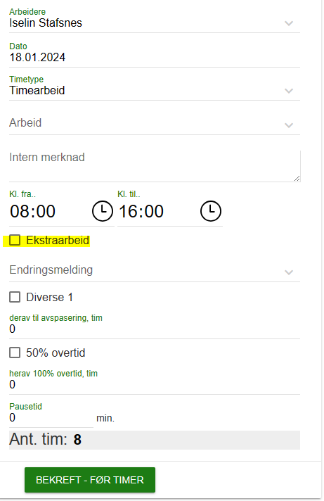 - Registrer timer manuelt, eller med start-stopp-funksjon