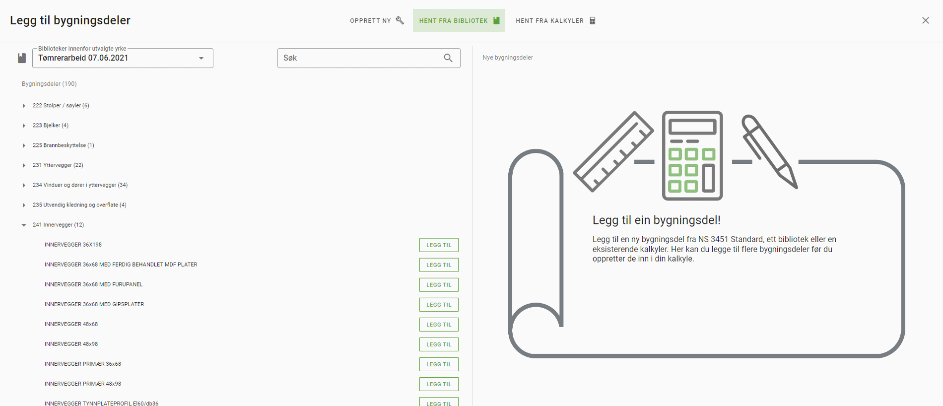- Egne moduler for tømrerarbeid, muring, maling, betongarbeid, grunnarbeid, rigg og drift.
