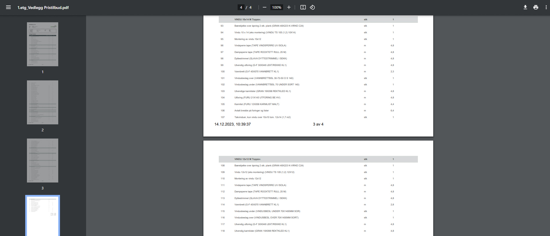 - Ordre til leverandører med fullstendig liste av materialene du bruker
