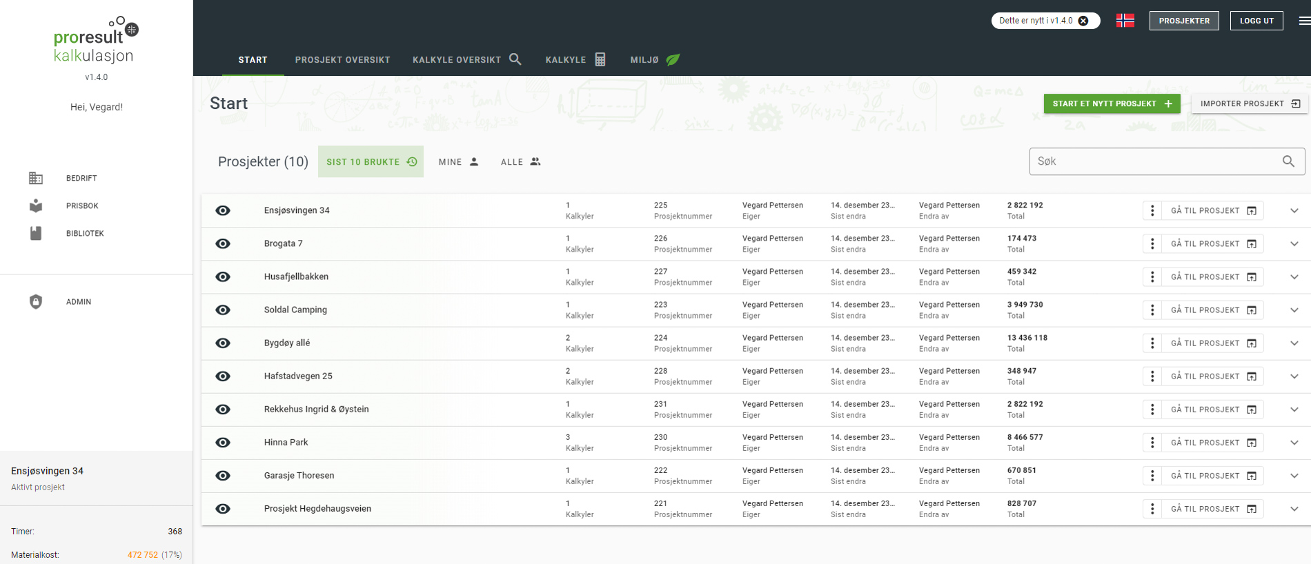 Du kan også eksportere data fra Kalkulasjon til andre Proresult-systemer, eksempelvis HMS/KS og Planlegger.